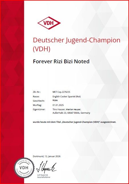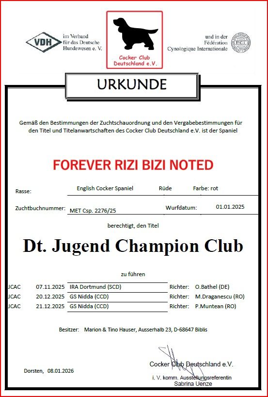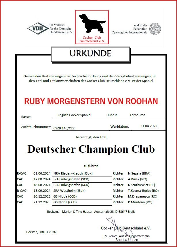 Anwartschaft Deutscher Jugend Champion VDH und Club (CCD),