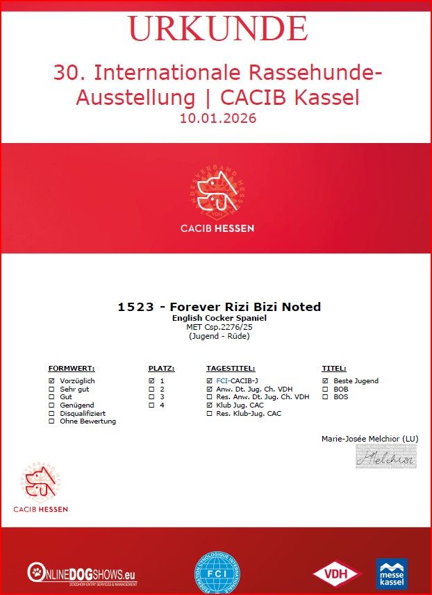 vorzüglich 1, Jgd.CAC VDH, Jgd.CAC Klub, J-CACIB